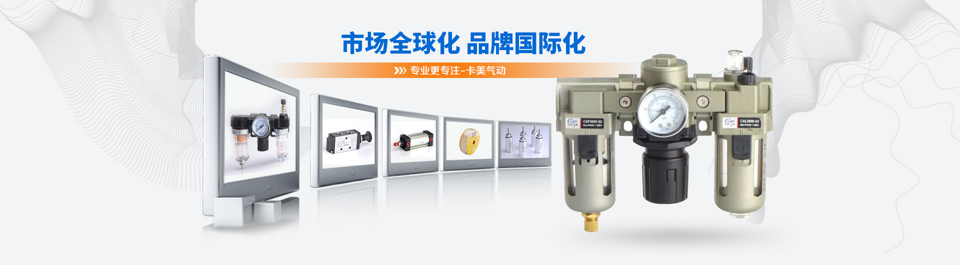 卡美氣動(dòng)有限公司是一家具有現(xiàn)代化生產(chǎn)規(guī)模的專業(yè)開發(fā)、制造氣動(dòng)元件的公司。主導(dǎo)產(chǎn)品有:氣源處理系列、標(biāo)準(zhǔn)缸、迷你缸、超薄缸、QGB(大直徑)氣缸、雙軸缸、電磁閥、氣動(dòng)閥、油壓缸、快速接頭、PU氣管等產(chǎn)品。